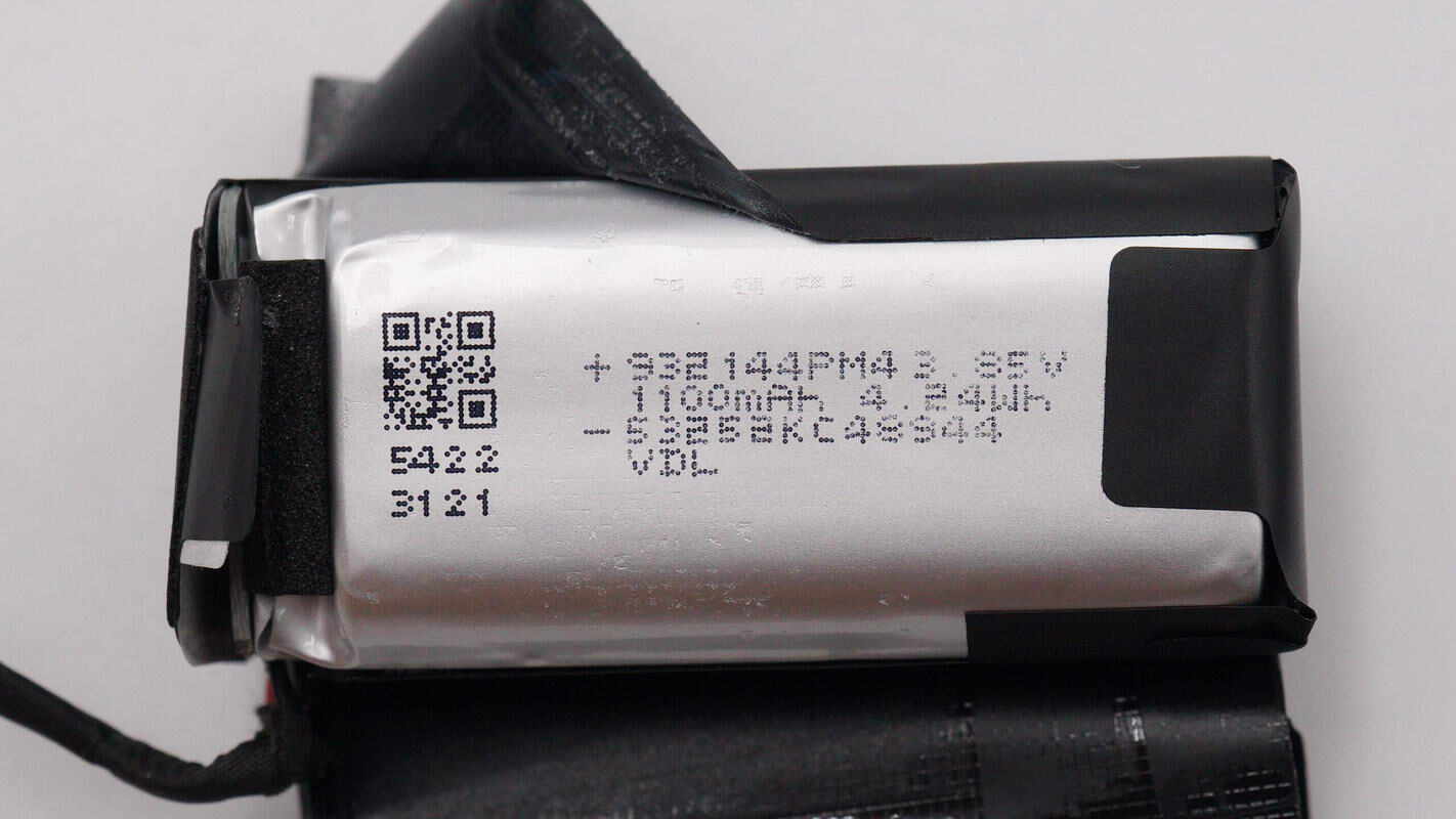两块小电芯来自VDL紫建,型号932144PM4,规格为3.85V/1100mAh/4.2Wh。