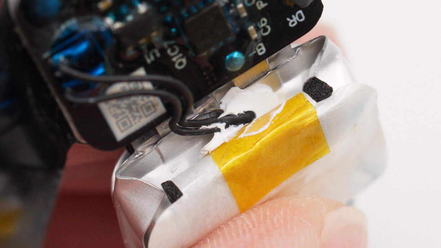 电池组端部也贴有泡棉。
