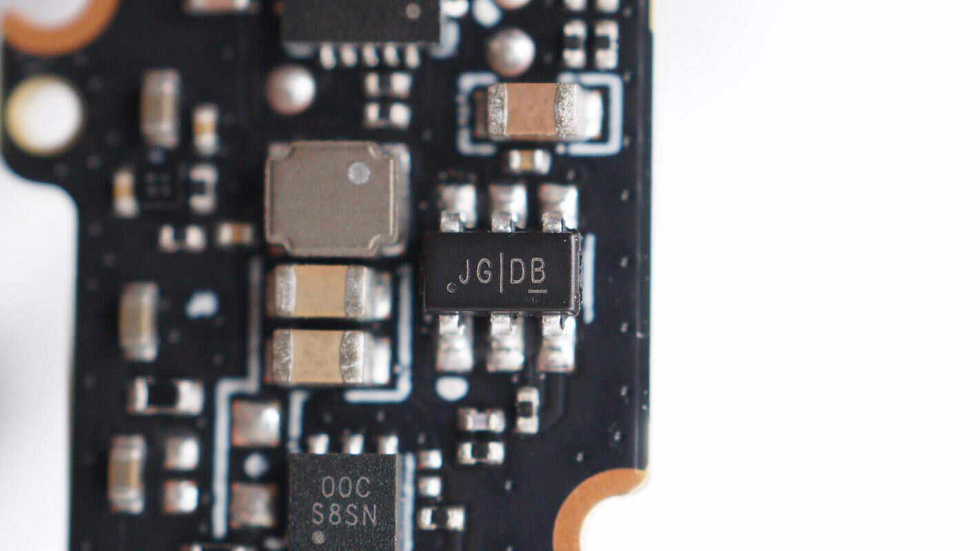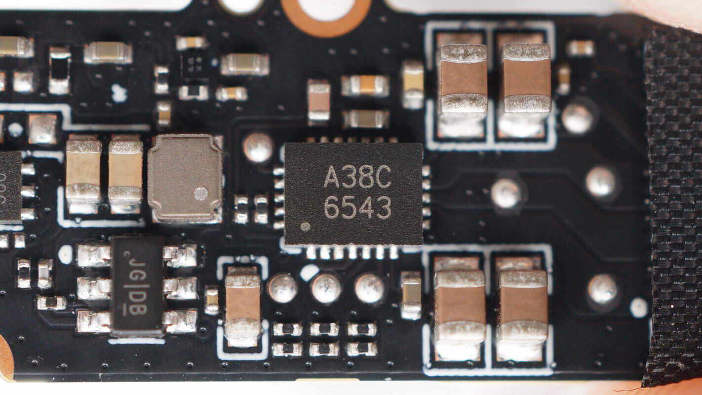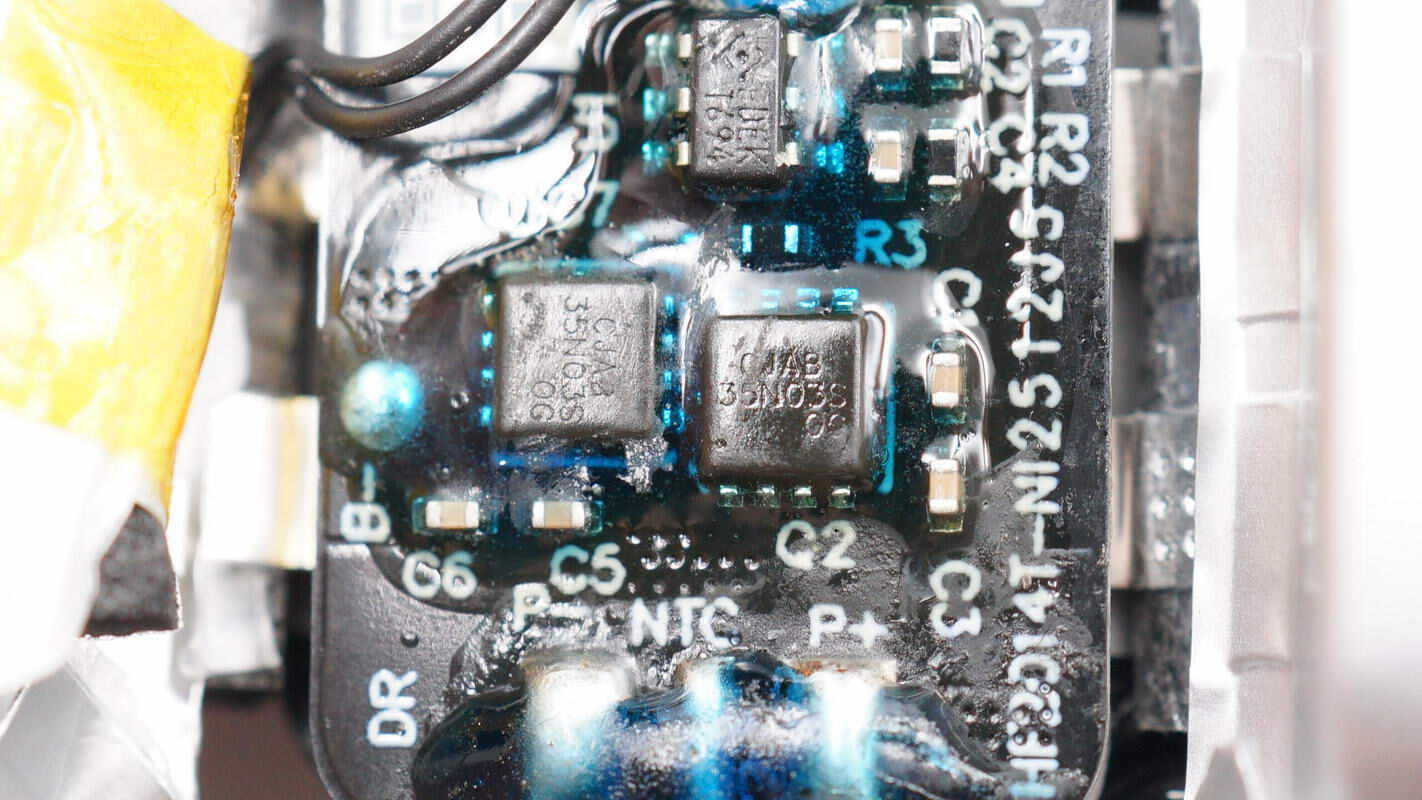两颗锂电保护管来自JSCJ长晶科技,型号CJAB35N03S,NMOS,耐压30V,导阻5.2mΩ,采用PDFNWB3.3*3.3-8L封装。