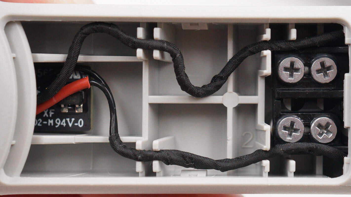 内部PCB板使用螺丝固定,连线导线焊接处粘贴绝缘布胶带处理。