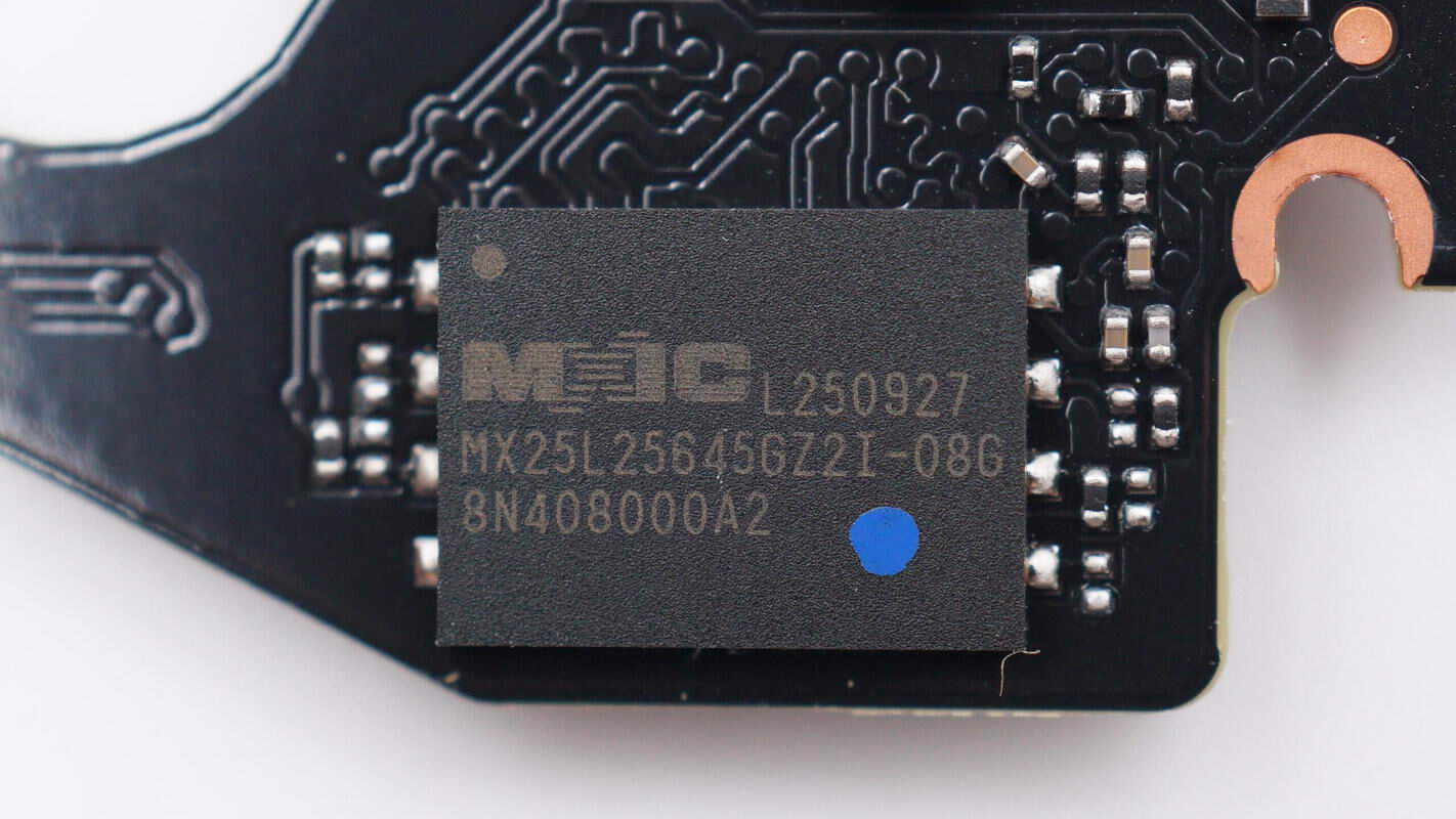 存储器采用旺宏MX25L25645GZ2I-08G,这是一款32MB容量的串行NOR闪存芯片,支持2.7-3.6V工作电压范围,采用8-WSON封装。