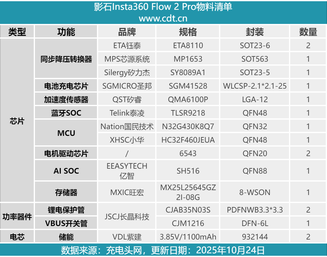 最后附上影石Insta360 Flow 2 Pro的核心物料清单,方便大家查阅。