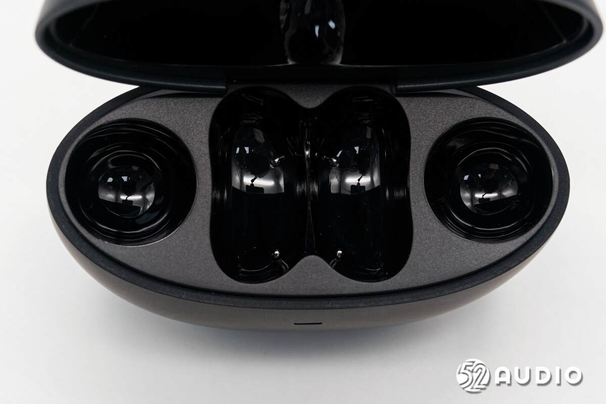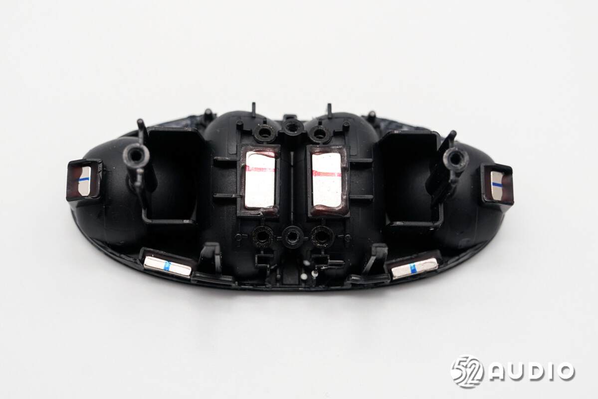 座舱底部结构一览,设置有6颗磁铁,用于稳定吸附耳机和充电盒盖。