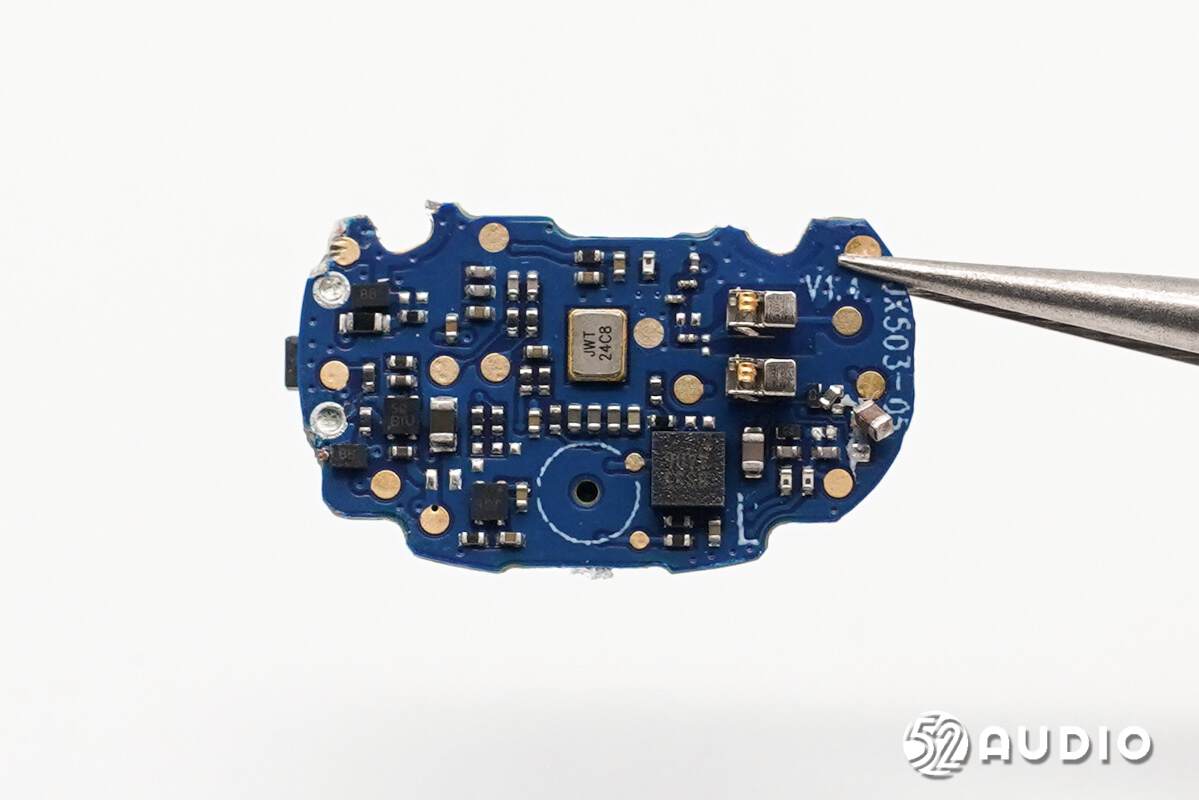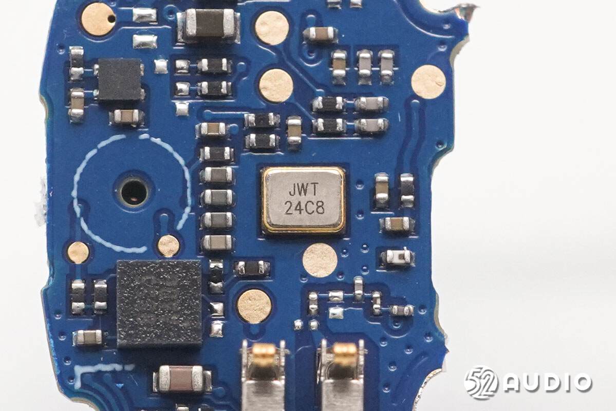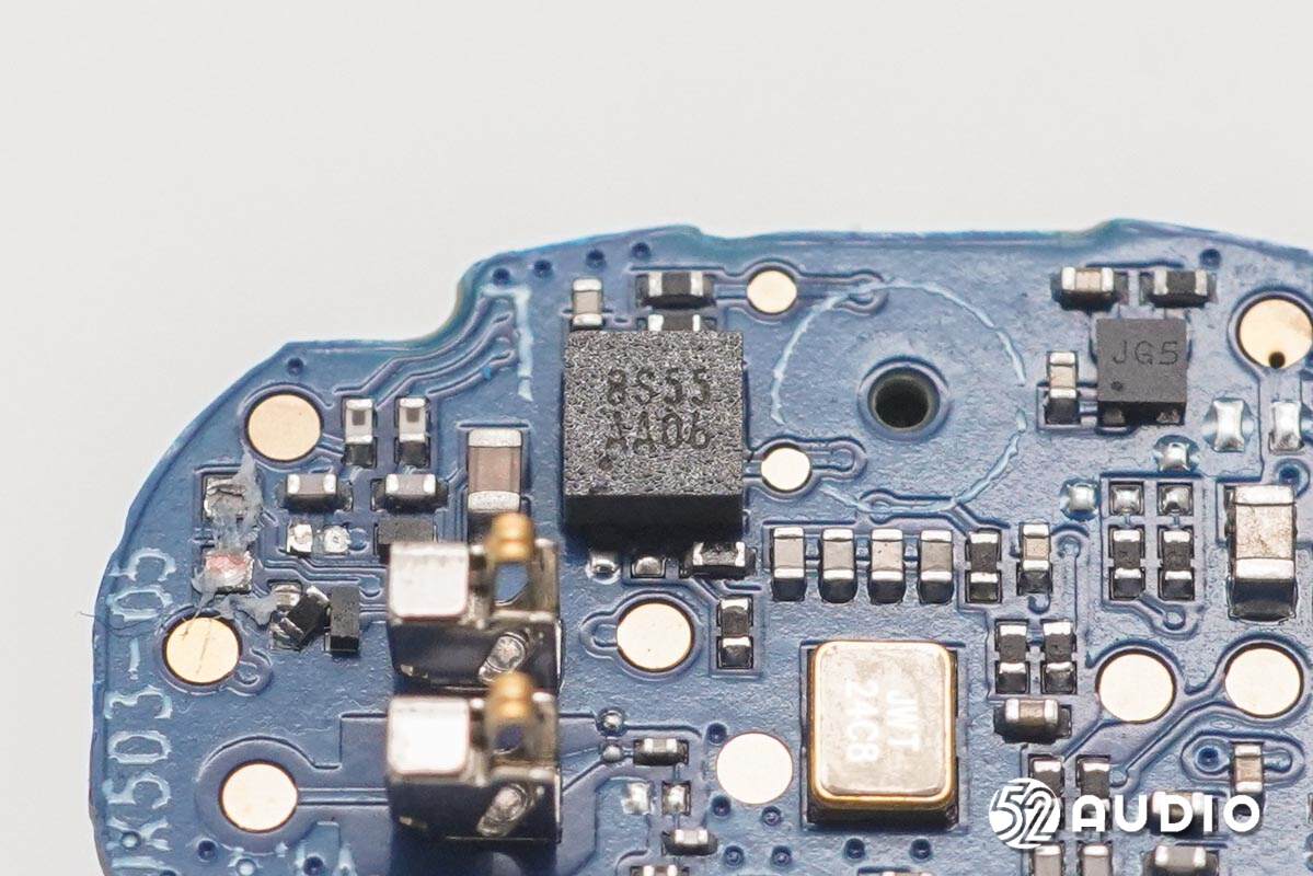 耳机内置WD微电新能源3.85V/48mAh软包扣式电池,搭载Knowles楼氏电子RAN-34902-B148动铁+三磁路高灵敏动圈双单元,采用两颗MEMS麦克风拾音。主控芯片为BES恒玄科技BES2710IHC蓝牙音频SoC。其他还采用了Sunlord顺络电子SDCL0603Q系列叠层陶瓷电感等方案。