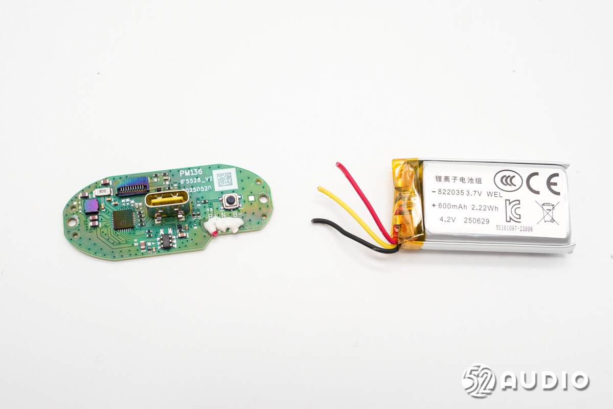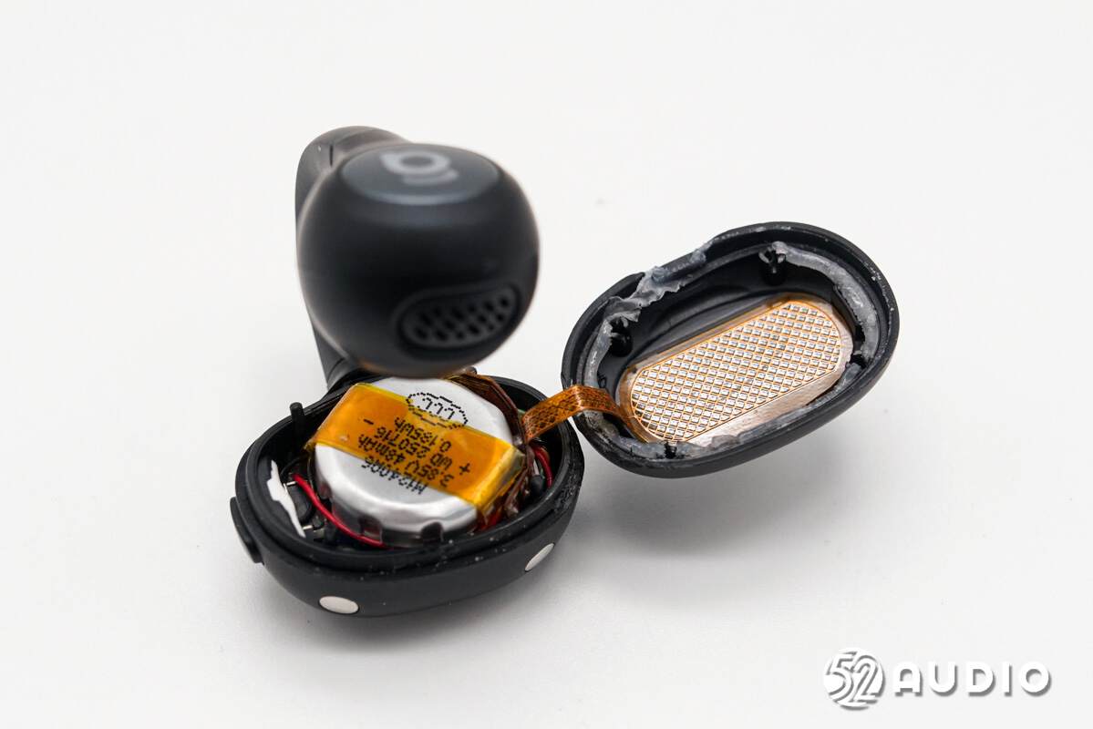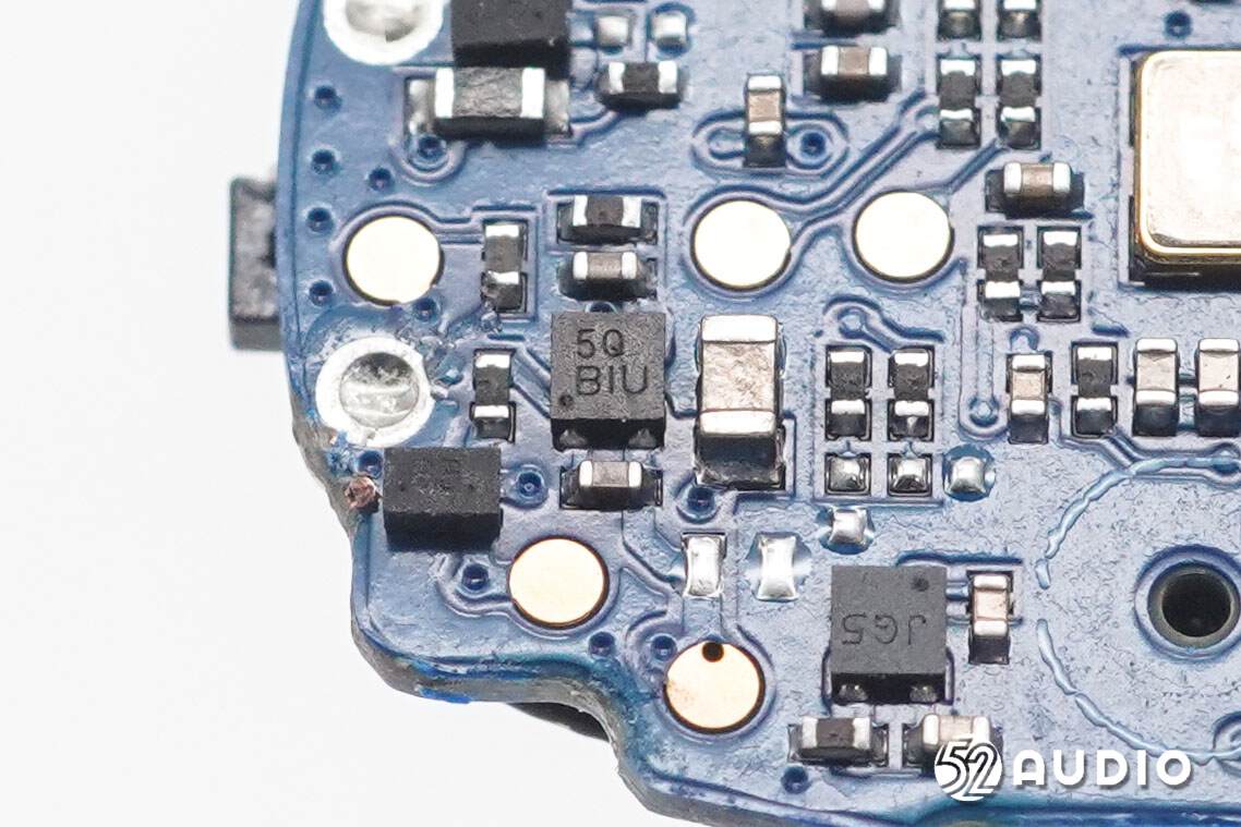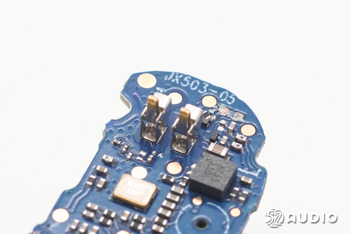耳机内置WD微电新能源3.85V/48mAh软包扣式电池,搭载Knowles楼氏电子RAN-34902-B148动铁+三磁路高灵敏动圈双单元,采用两颗MEMS麦克风拾音。主控芯片为BES恒玄科技BES2710IHC蓝牙音频SoC。其他还采用了Sunlord顺络电子SDCL0603Q系列叠层陶瓷电感等方案。