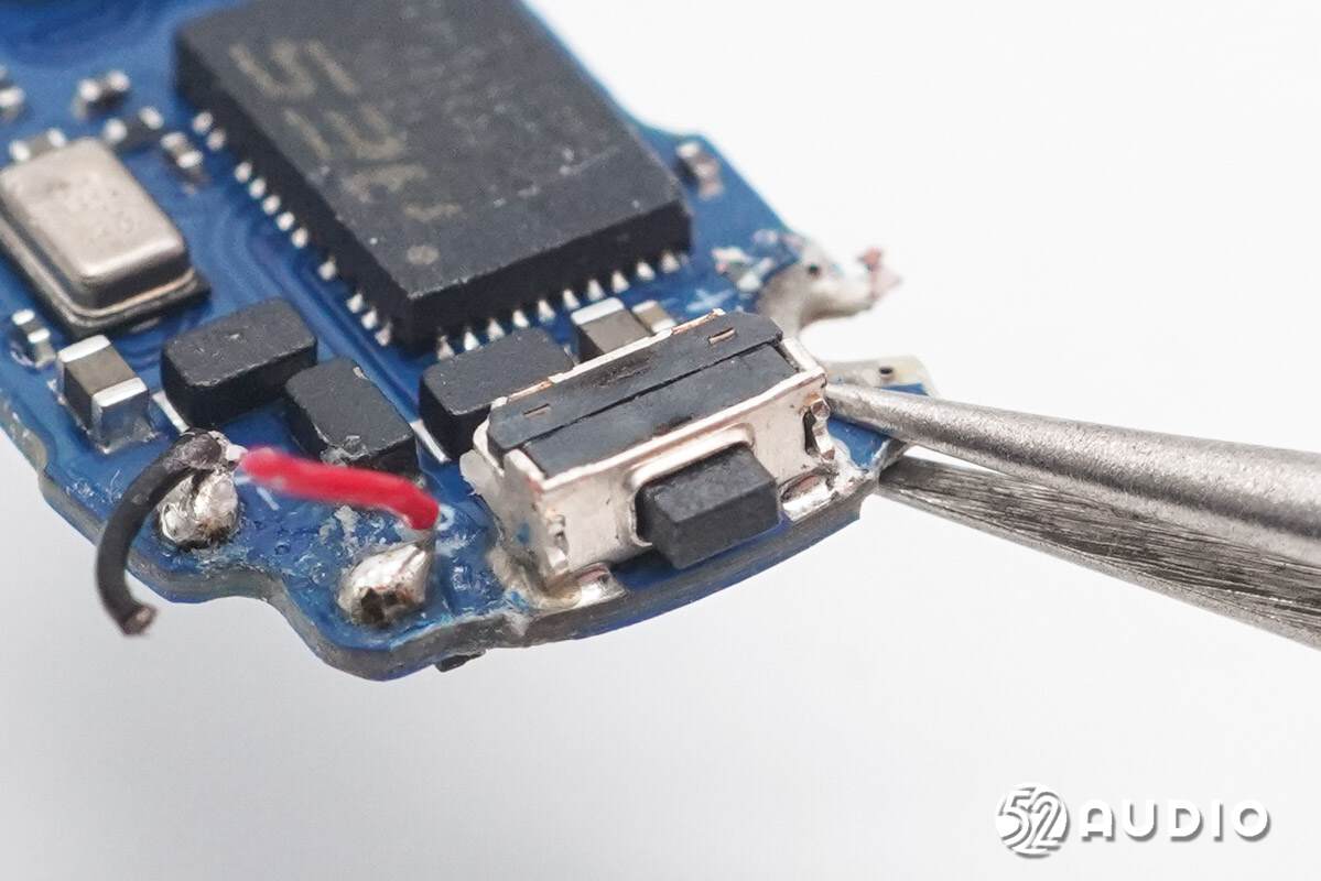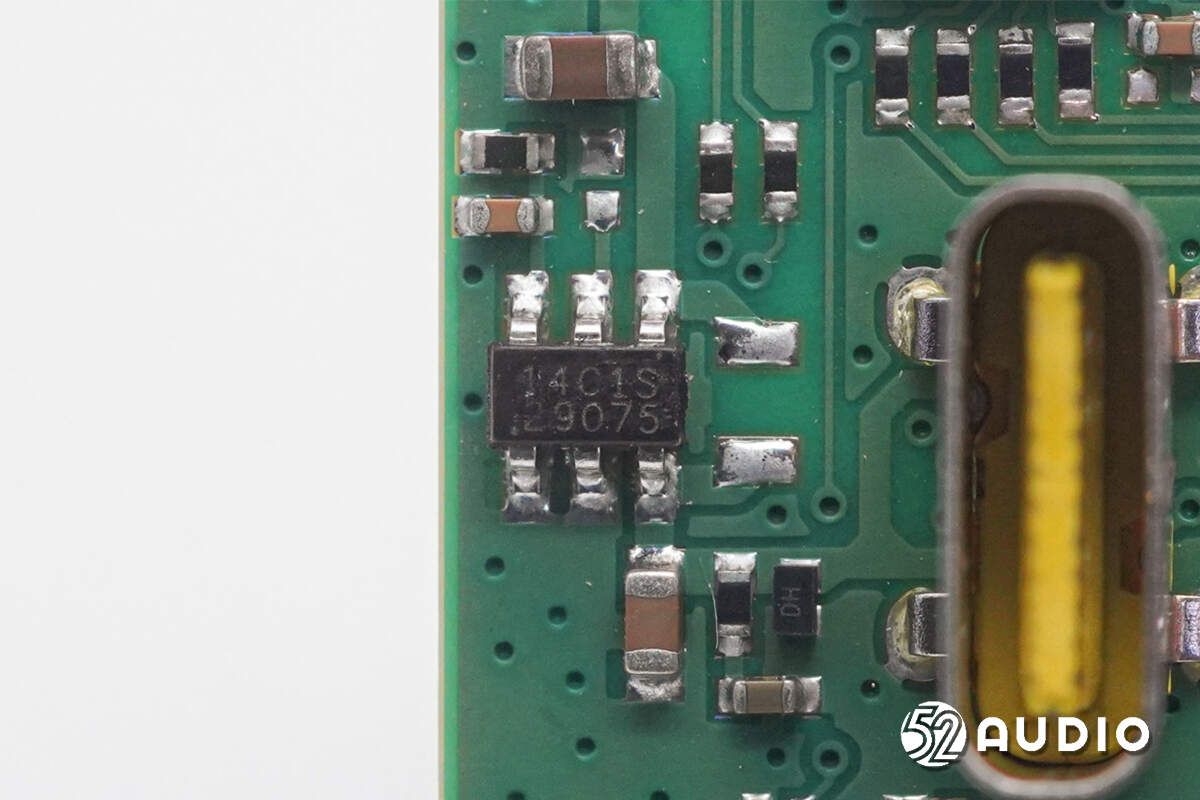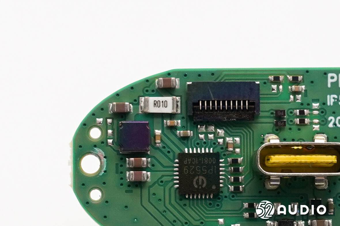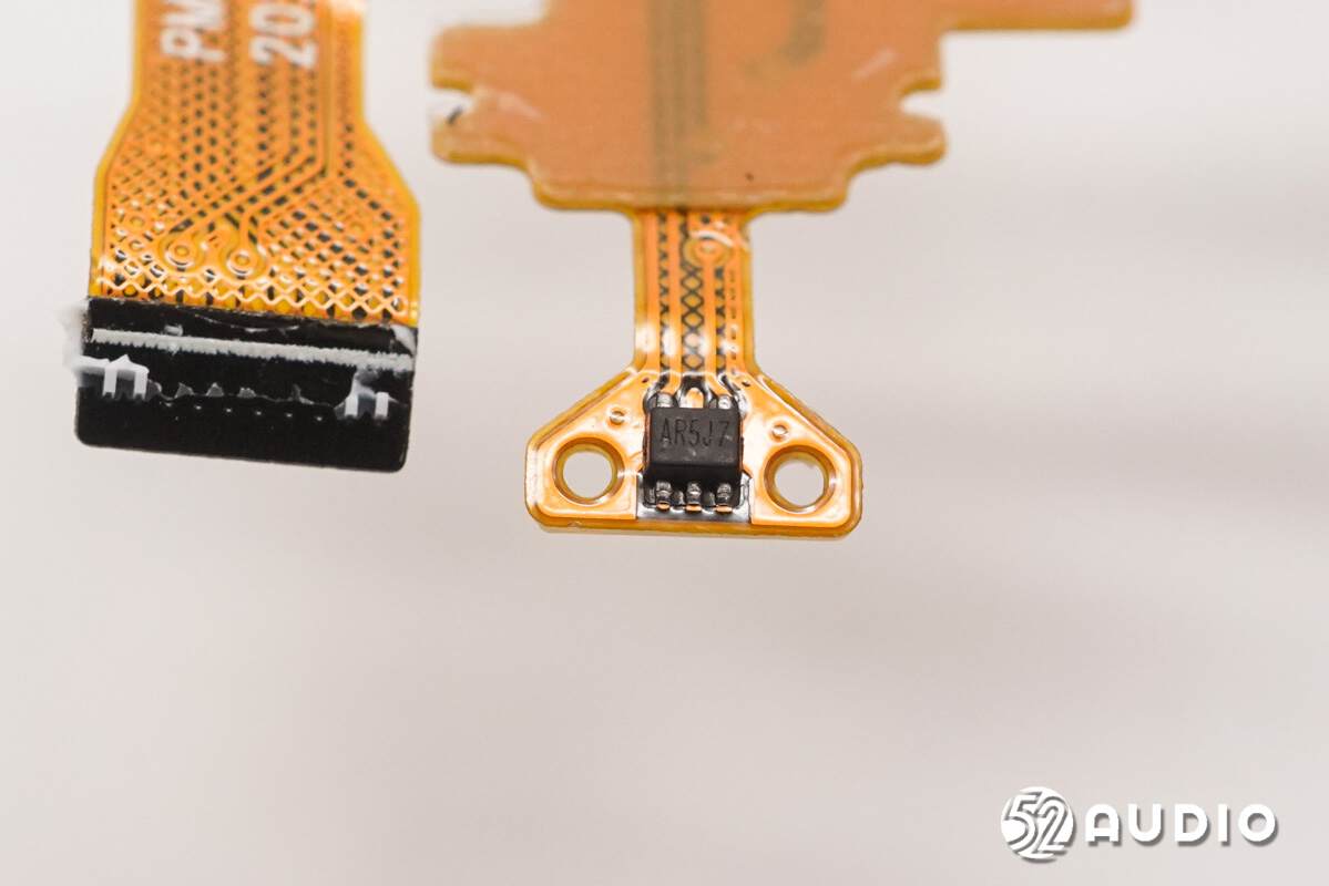 丝印AR5J7的霍尔元件,用于感知耳机出入仓时的磁场变化,进而通知充电盒MCU和耳机与已连接设备配对或断开连接。