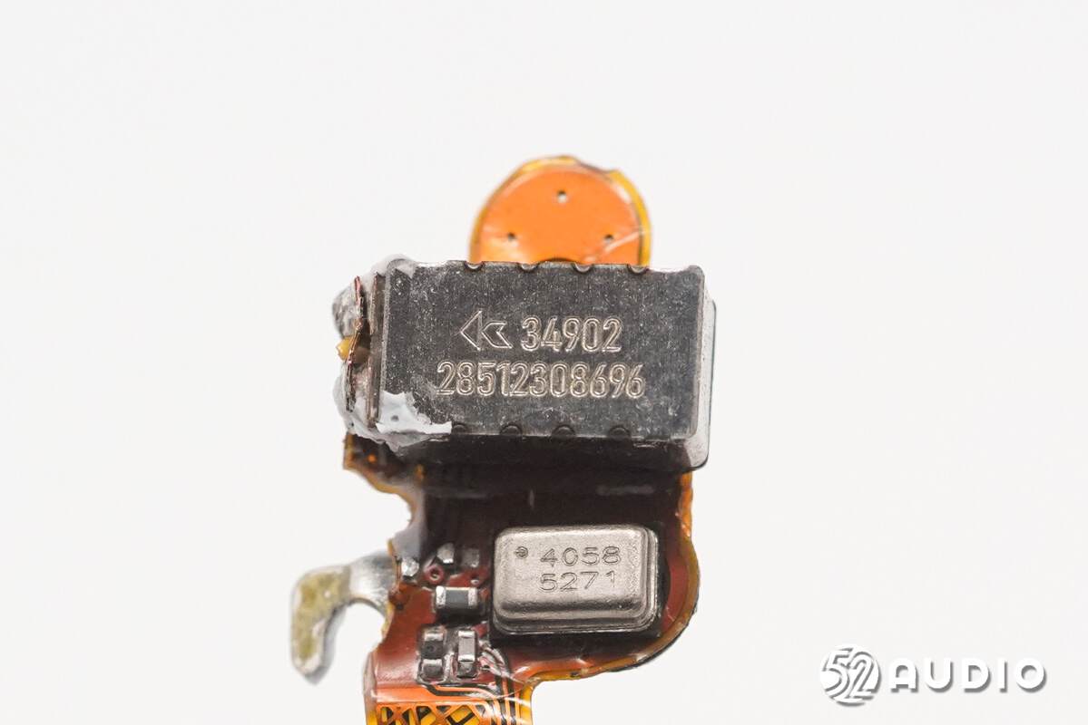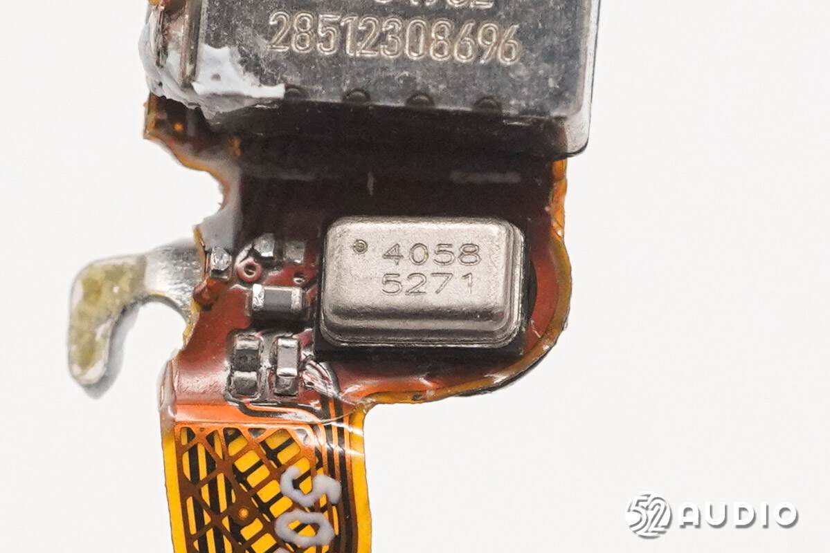 第二颗镭雕4058的MEMS麦克风特写,用于语音通话、动态音质均衡、动态低音增强等功能拾音。