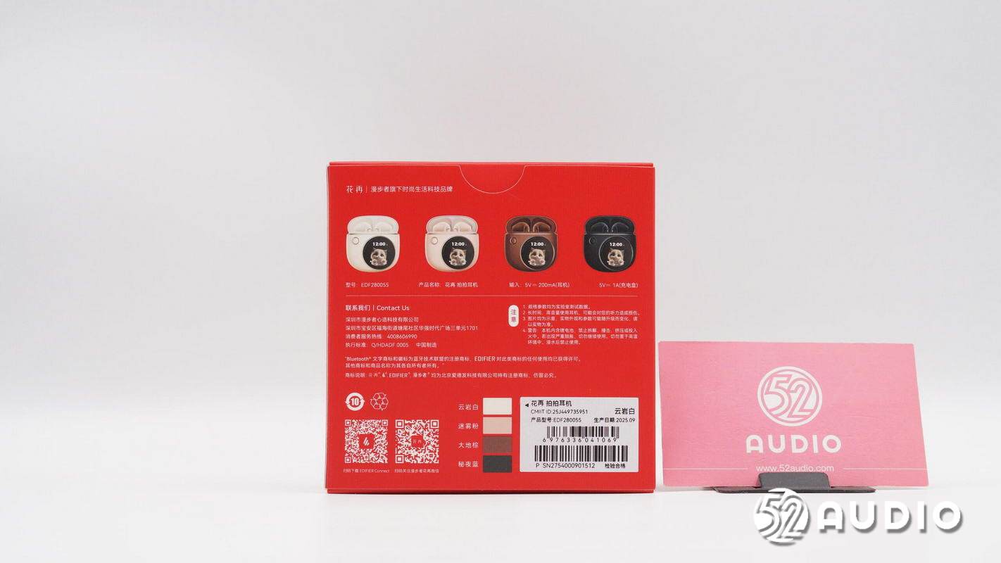 在音频体验方面,漫步者花再 拍拍耳机搭载13mm高分子复合振膜动圈单元,支持4种个性音效,用于满足不同的喜好;支持AI智能通话降噪,削减环境噪音,提高通话时的人声清晰度;支持蓝牙V6.0技术,提供超低延时的稳定传输。续航上,耳机单次播放时长约7小时,搭配充电盒综合续航约35小时;闪充15分钟,可听歌约2小时。下面就来看看这款产品的详细拆解报告吧~