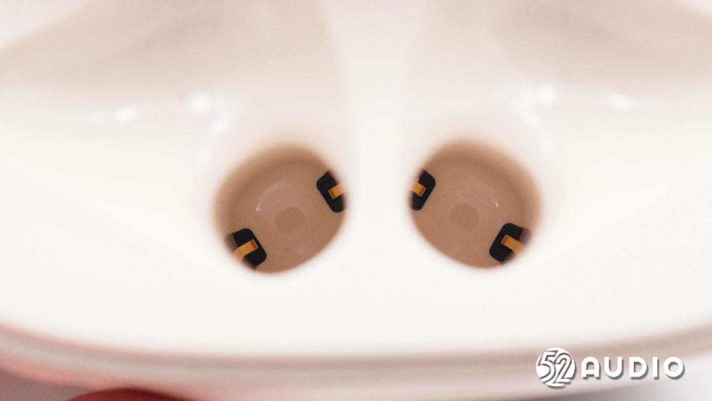 取出耳机,座舱底部设置有为耳机充电的金属弹片。