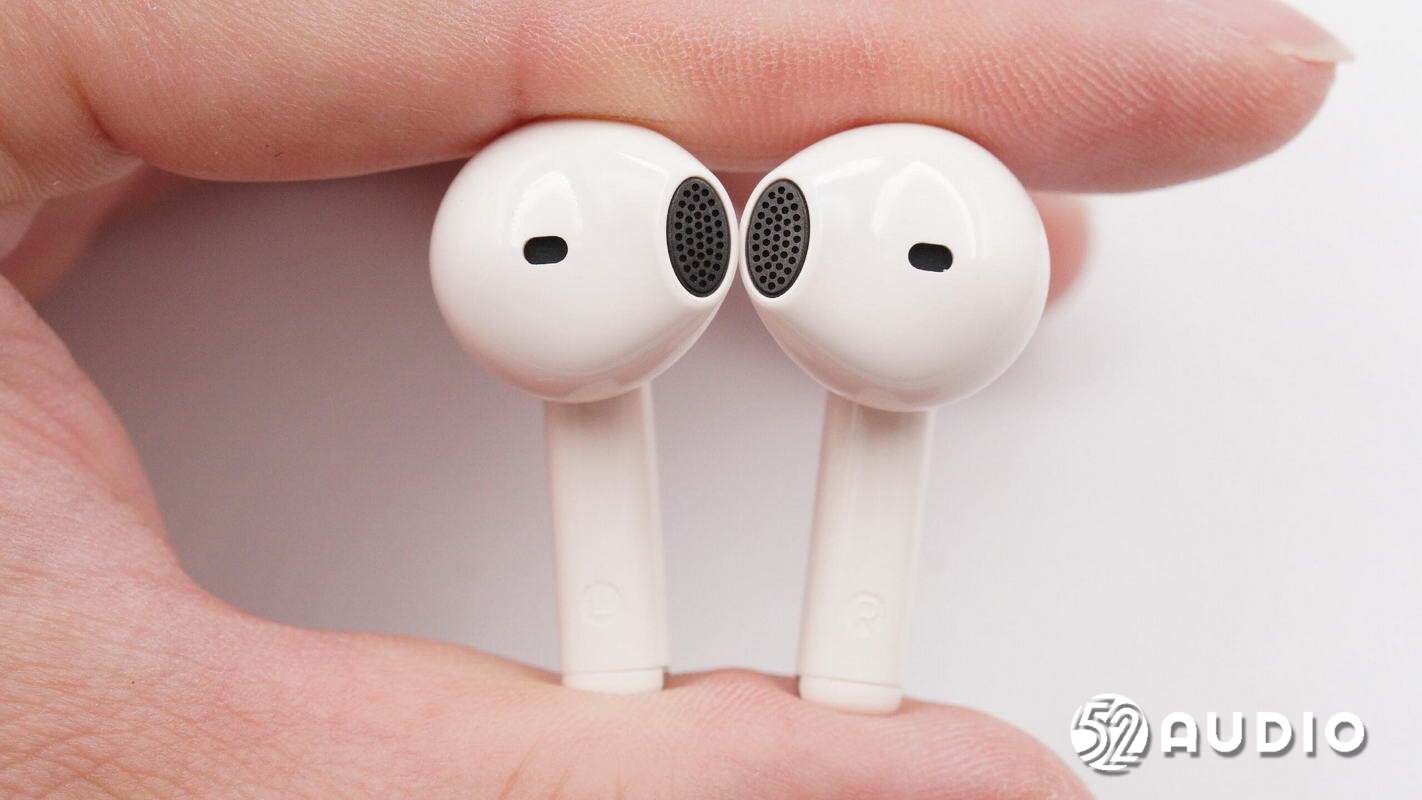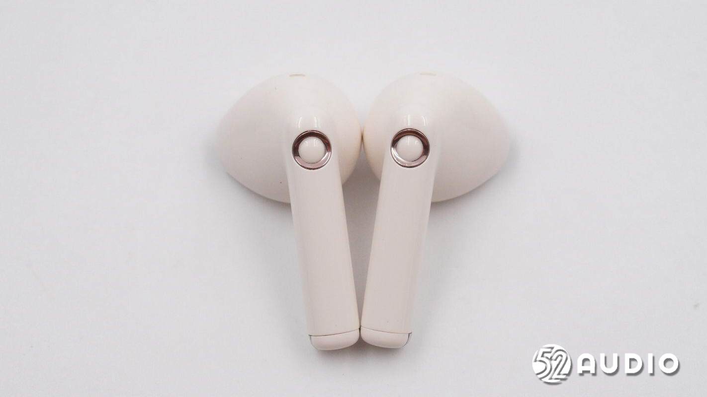 漫步者花再 拍拍耳机整体外观一览,耳机采用了柄状的半入耳式设计,体积小巧轻盈,佩戴舒适。