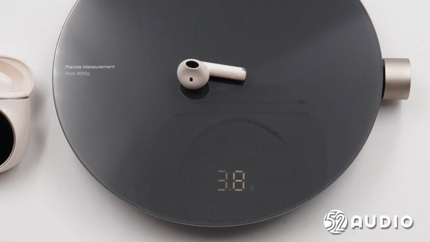 单只耳机重量仅为3.8g,体积轻盈,佩戴舒适。