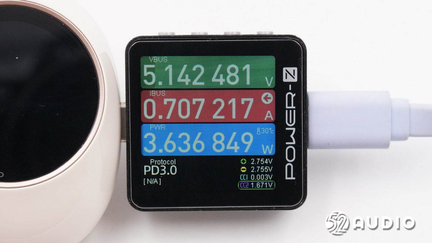 我爱音频网采用CHARGERLAB POWER-Z KM003C测试仪对漫步者花再 拍拍耳机进行充电测试,输入功率约为3.64W。