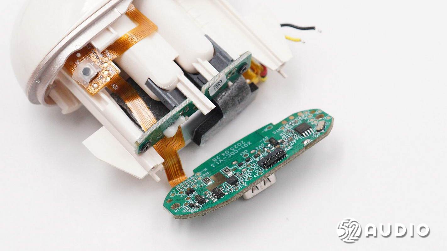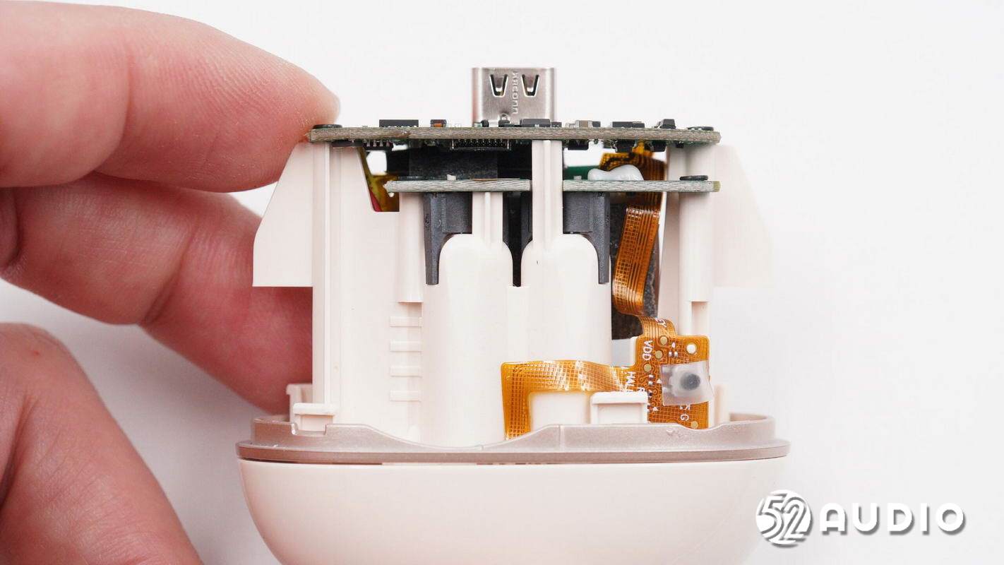 卸掉螺丝,断开电池导线,取掉主板,下方还设置有为耳机充电的小板。