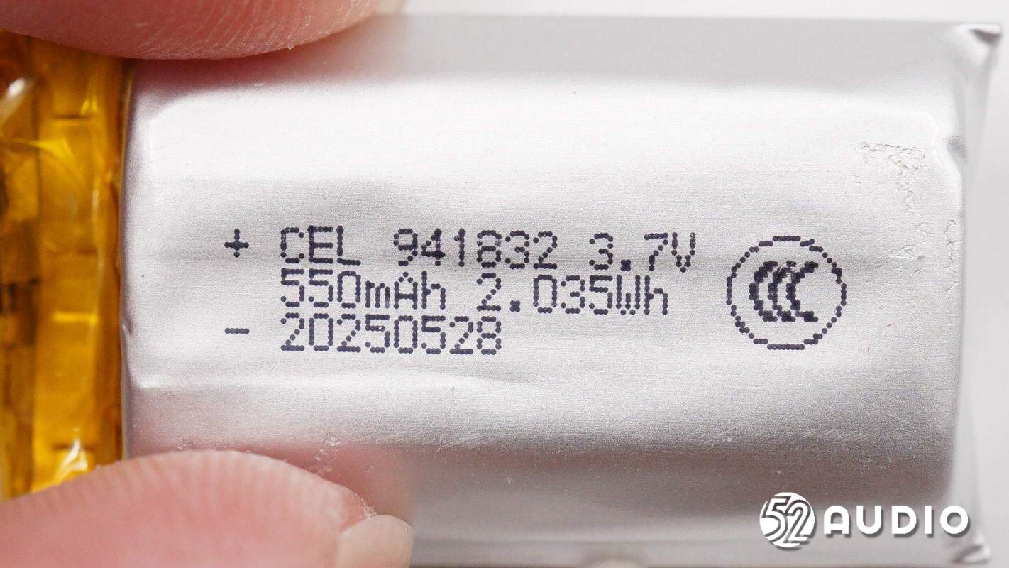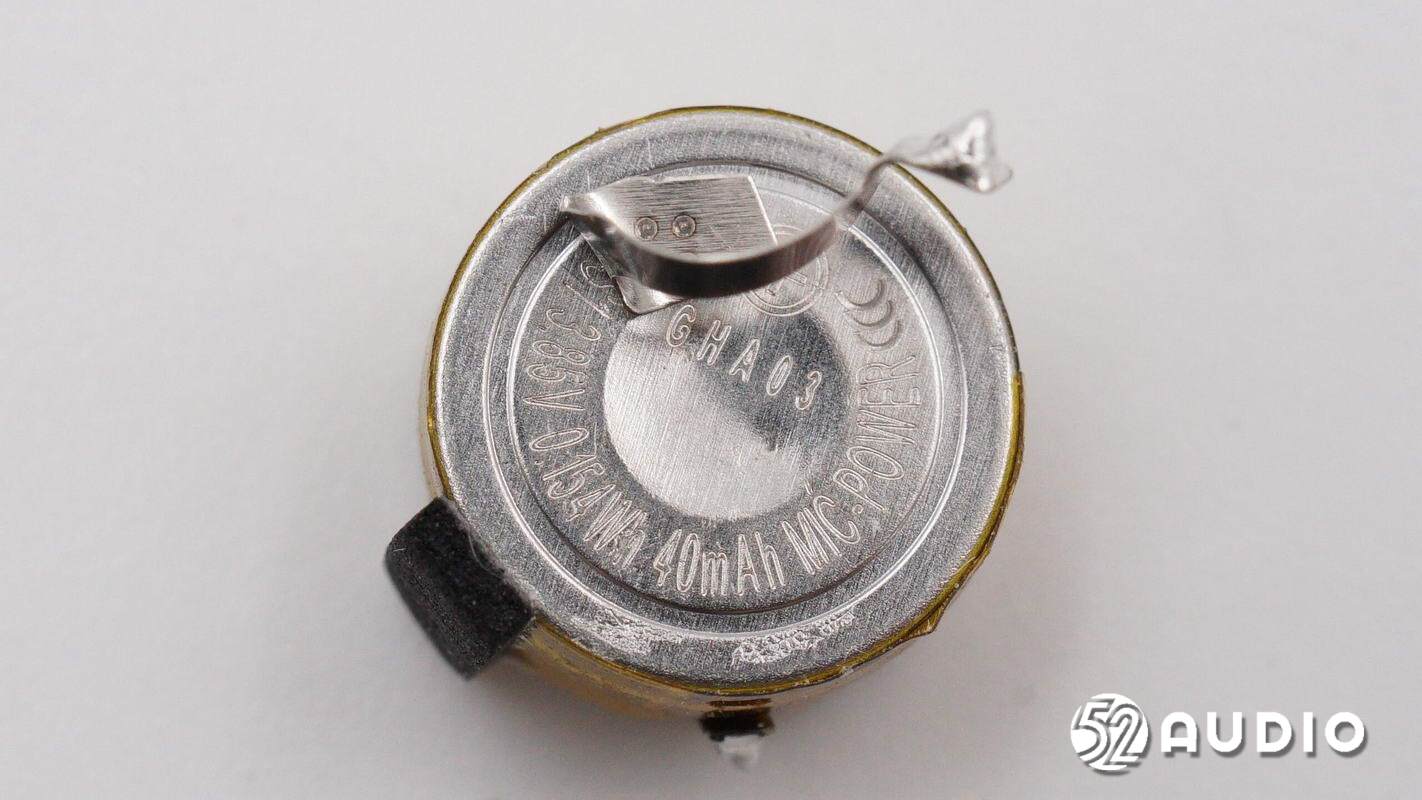耳机内置钢壳扣式电池来自MIC-POWER微电新能源,标称电压:3.85V,容量:40mAh 0.154Wh。