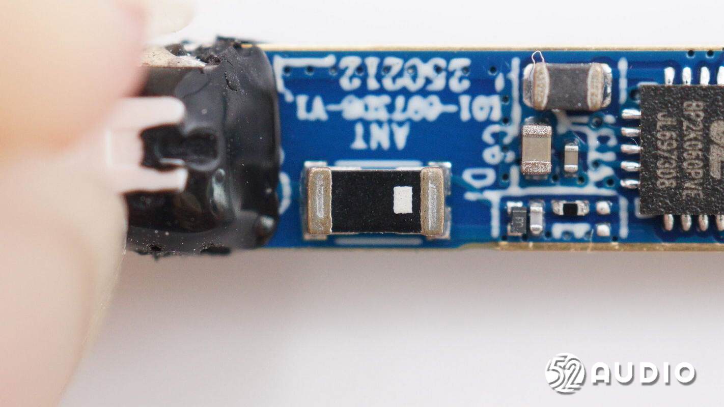 主板与尾塞焊接,黑色硬质胶水固定,内部设置有通话麦克风。